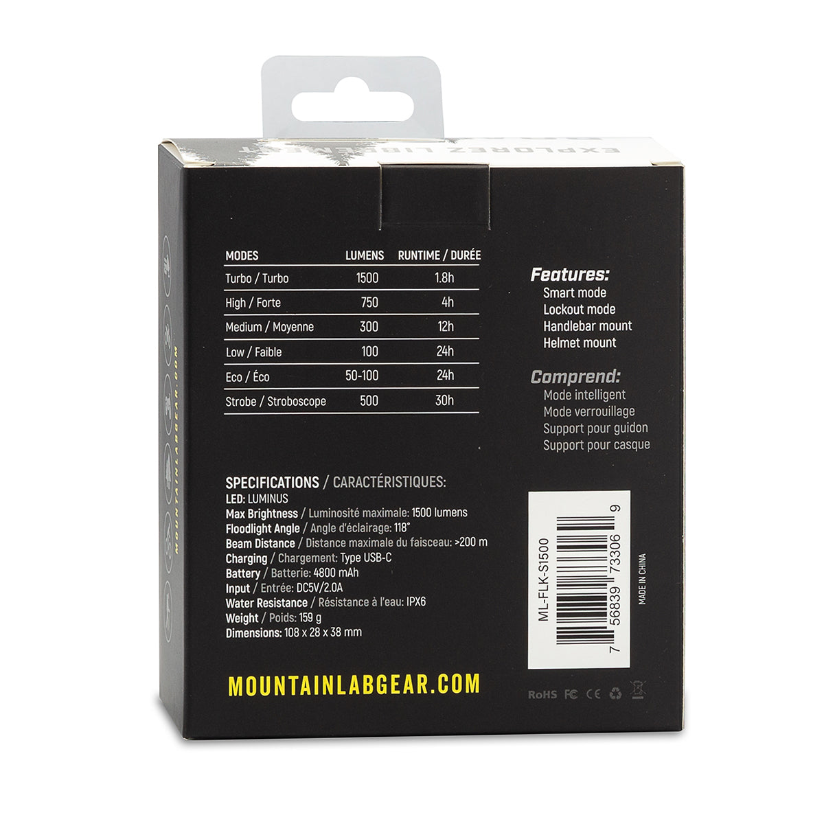 Une lampe torche puissante et équilibrée. La S1500 offre une luminosité exceptionnelle sans l'encombrement des modèles plus imposants. Grâce au mode intelligent , au verrouillage et aux fixations pour casque et guidon, elle est conçue pour s'adapter, protéger sa batterie et faire bien plus que simplement « éclairer ».